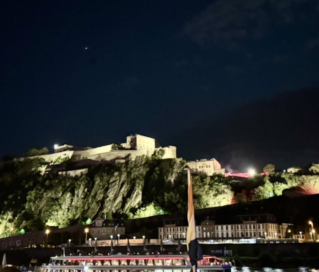Le 8/8 : Départ en train du Luxembourg. A Coblence, montée en téléphérique à la forteresse « Ehrenbreitstein ». Déjeuner au « Casino » suivi d’un visite de la forteresse. Temps libre dans la ville en fin de journée